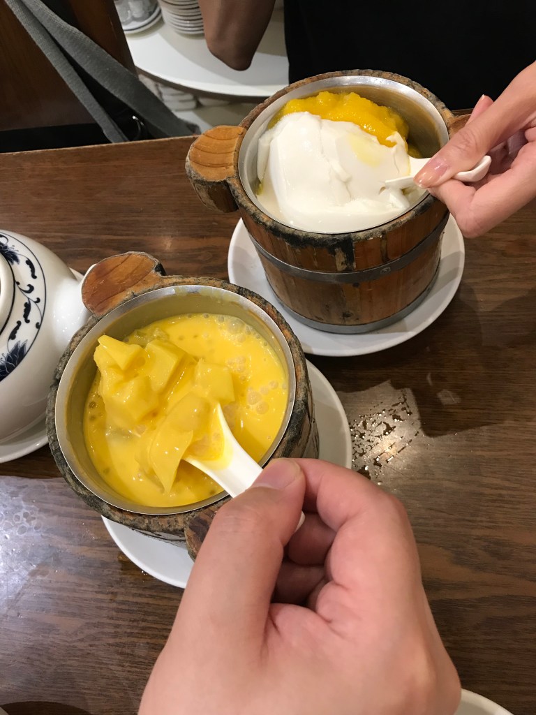 This dessert is so simple but so yummy. It’s basically mango pulp with sweet bean curd and sago. I love the bean curd because it’s silken texture reminds me of taho (I think it actually is taho!)- a silken fresh soy bean curd street food that most Filipinos will have at breakfast.