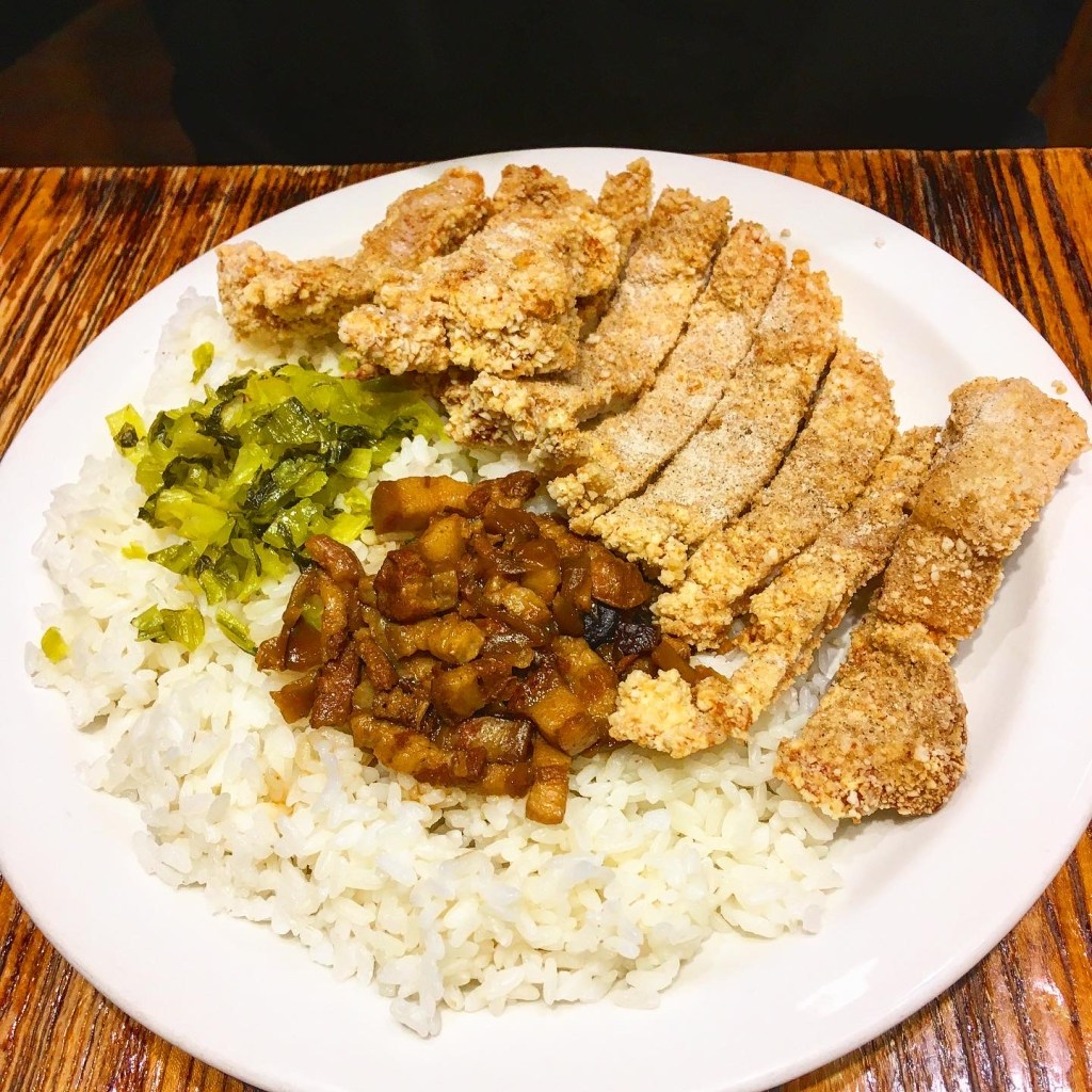 For lunch I had a I had a traditional Taiwanese breaded and deep fried fillet of chicken beaten until it’s thin and about twice its size. It comes as a “bento” – and I use the quotation marks because, strictly speaking, a bento meal is Japanese. My deep fried chicken was served with fragrant rice, curry sauce, spring rolls, pickled veg and a fried egg. Alan chose a dish from the chef’s recommendations board which was beef brisket served with steamed rice and a lot of carrots!
