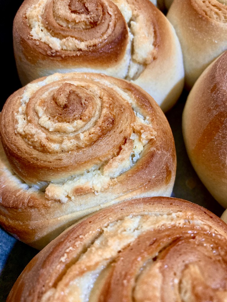 This is optional as it means adding more sugar, but if you’d like to add a glaze, mix 50ml milk, 4 heaping tablespoons of confectioners sugar and 1 teaspoon of almond extract and combine until smooth and lump free. Drizzle over the buns. Serve and enjoy!