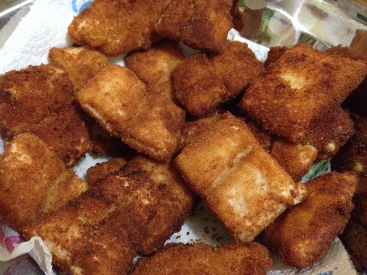 After breading the fish, I fried the fish to a crispy, lovely golden brown. Make sure that you rest them on kitchen paper so that the excess oil is absorbed.