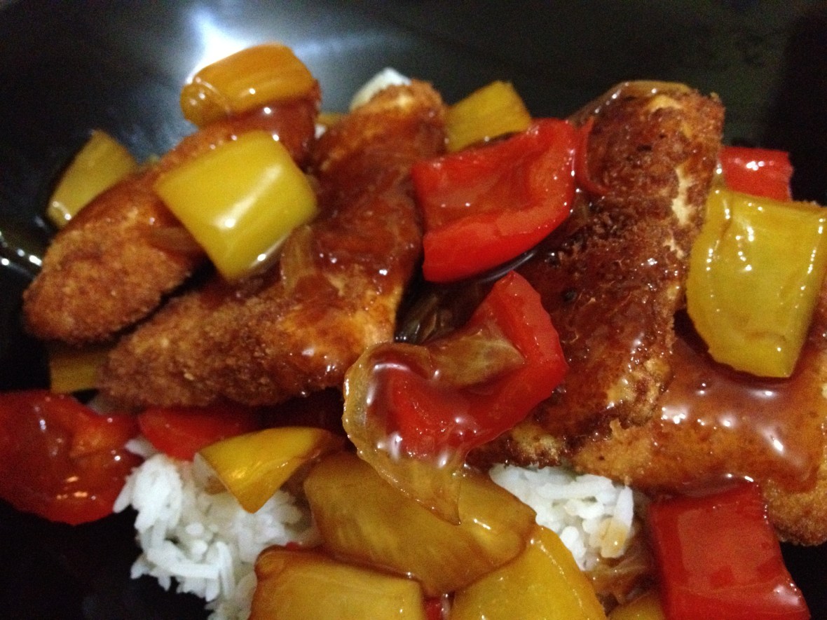 My mom used to make sweet and sour sauce from scratch, Filipino style, but I wanted to see if I could make something closer to the Chinese style of making the sauce. I googled it and found a recipe that was so similar to my mom’s that I knew it was going to taste really nice. You can find the instructions for the recipe here. It cooks in 5 minutes and you can add anything you want to it. You just put together all the ingredients and cook it until it’s as thick as you want it to be.
