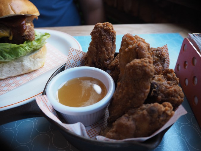 Then we ordered the chicken burgers.  There are 6 burgers to choose from the menu.  Being the buffalo addict that I was, I ordered the buffalo blue chicken burger.  This burger is a battered boneless chicken thigh fillet served on a brioche bun with buffalo sauce and a blue cheese slaw.  I don’t think I got a chance to take a photo of Alan’s burger but he ordered a bacon cheese burger.