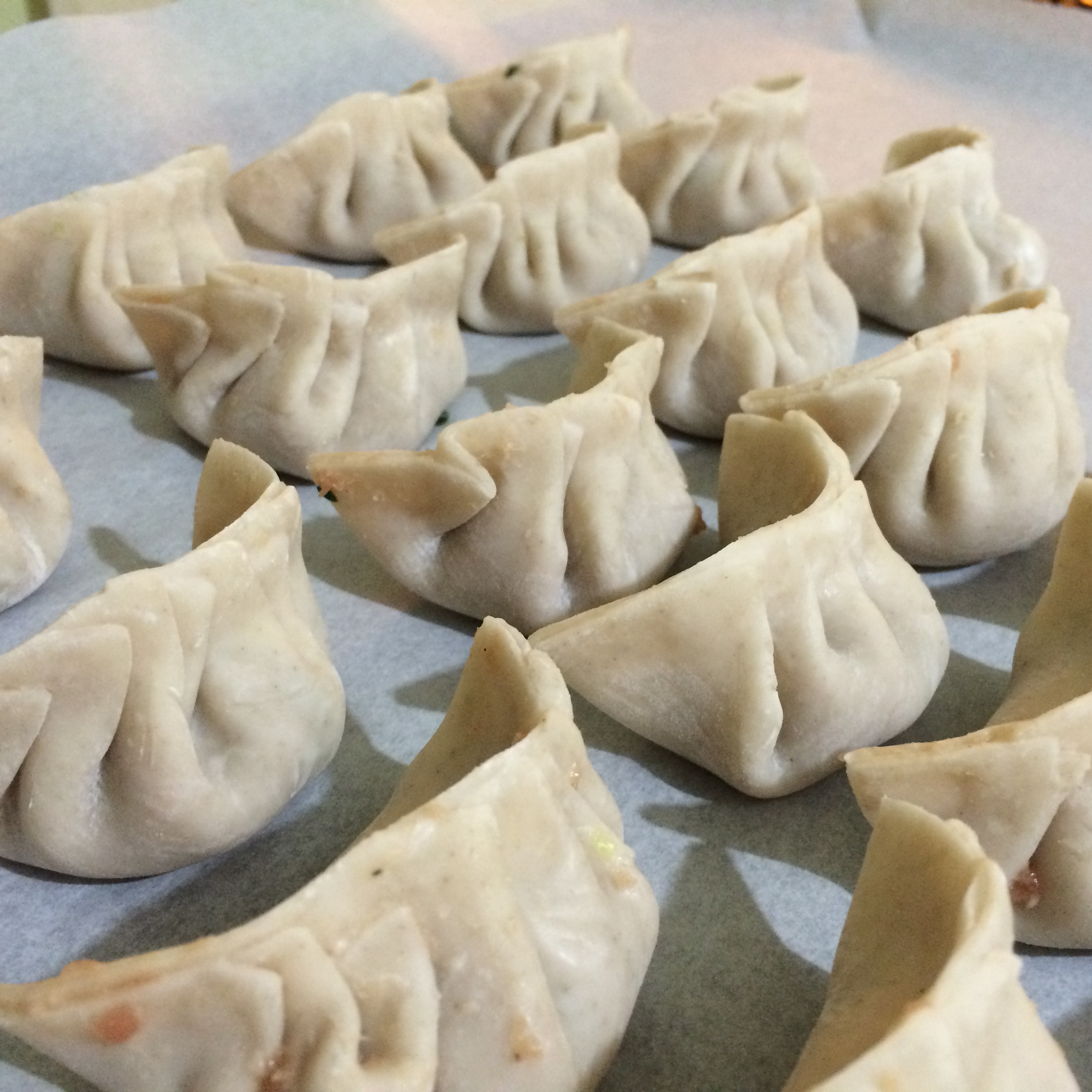 My version of cooking the dumplings might be different from most people, but it works for me. There are other ways, so feel free to cook them any other way that works for you. I place water and vegetable oil in a wok (or shallow saucepan) and allow the water to heat up to a gentle rolling boil. Place 6-8 dumplings in the boiling water and allow to boil covered for 5 minutes. Uncover the dumplings and swirl (carefully) around to make sure that the dumplings aren’t sticking to the bottom of the pan. Allow the water to evaporate and add a little oil to fry the dumplings until they’re golden brown.