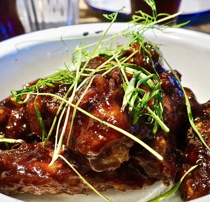 I started with my favourite flavour, the Korean-inspired wings called Gangnam. The wings were succulent but I guess it depended on who was cooking the wings because mine were a bit to soy saucy. My idea of Korean style food is a good combination of soy, sesame, garlic, spring onion and ginger. I found that it wasn’t quite the balance that I expected. Don’t get me wrong, the wings were amazing. But the glaze didn’t blow me away, flavour-wise.