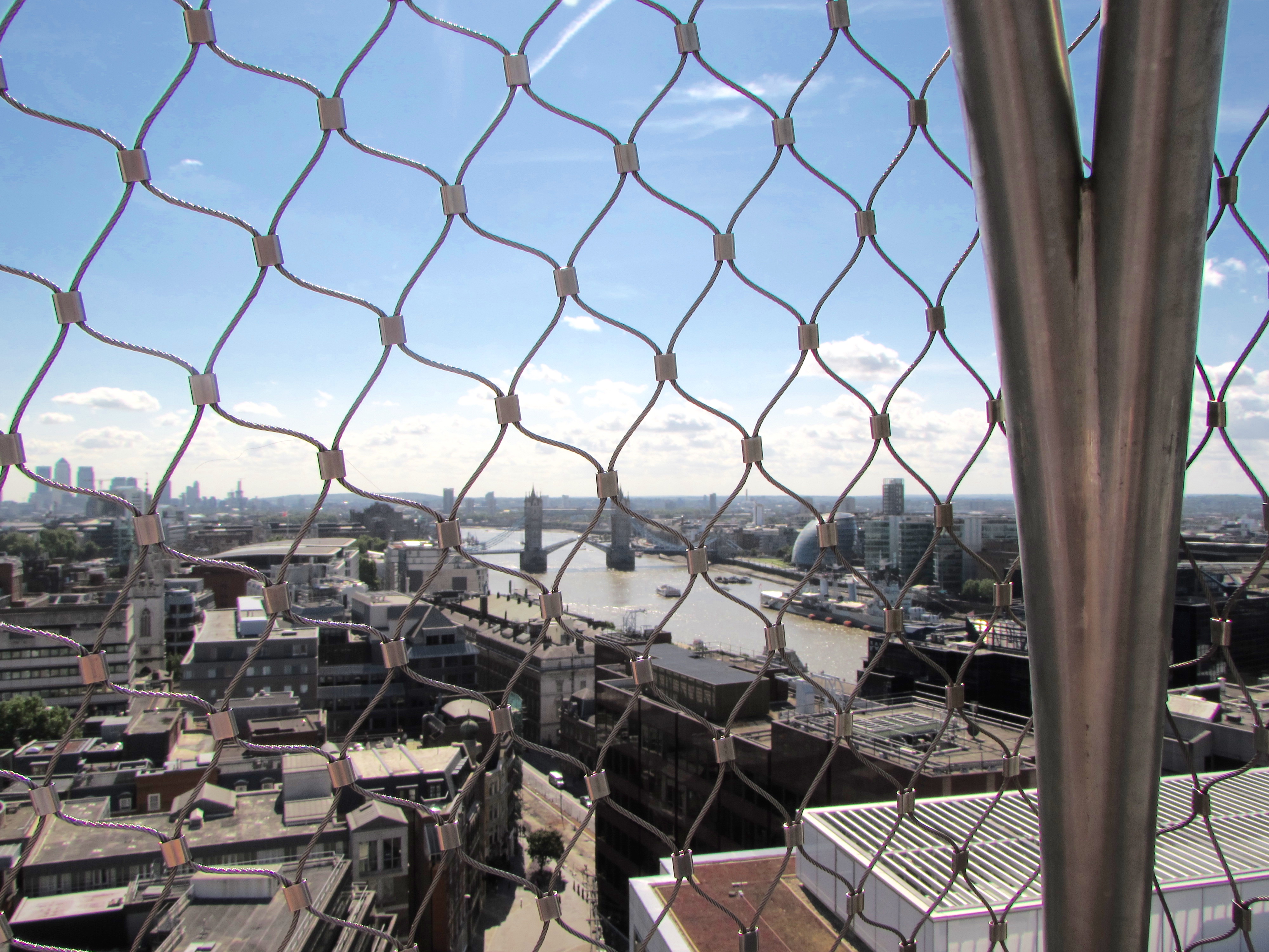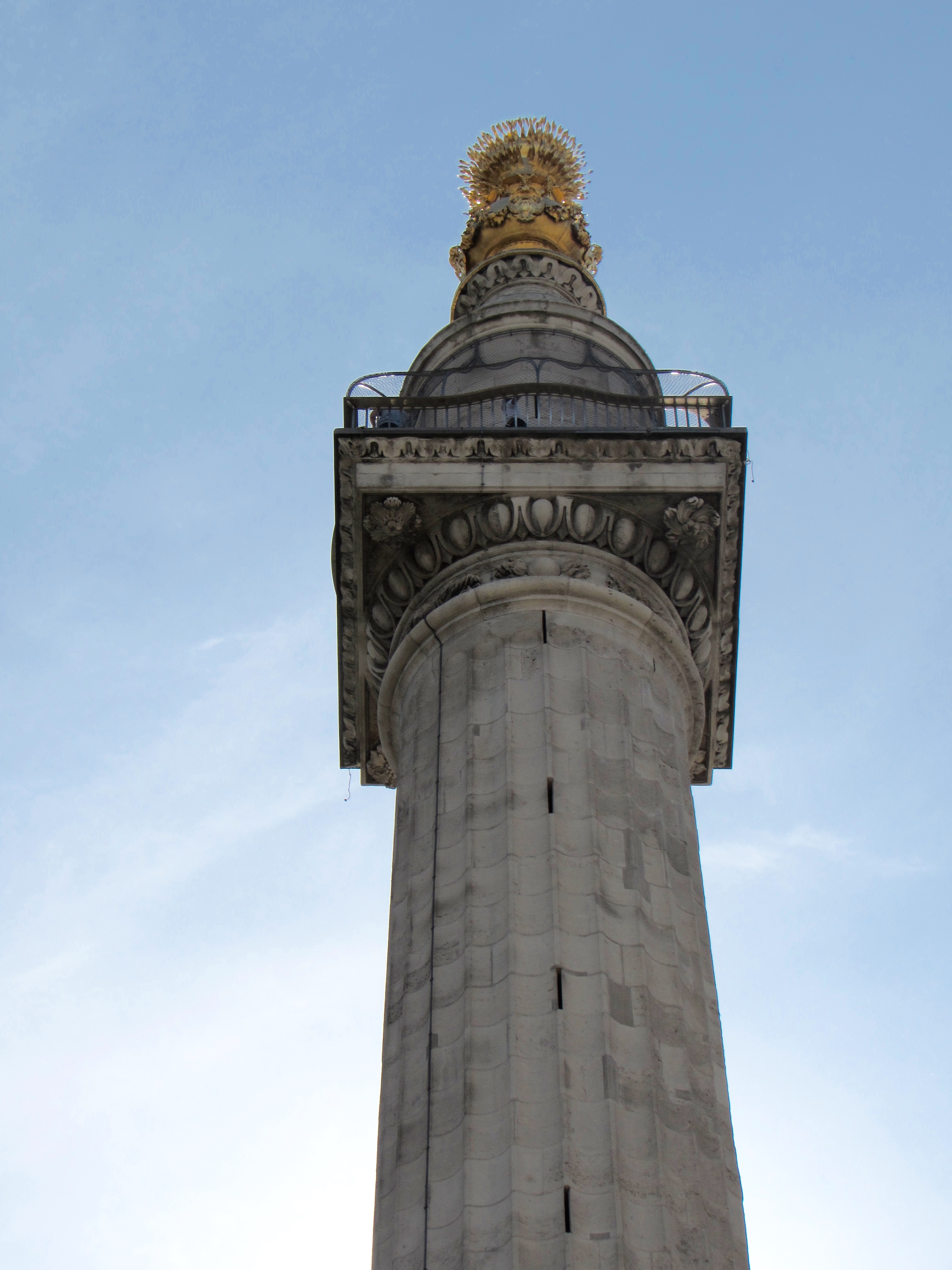 The mesh cage at the top was added mid-19th century to prevent any other persons from leaping off the the platform. I think it was a good decision!