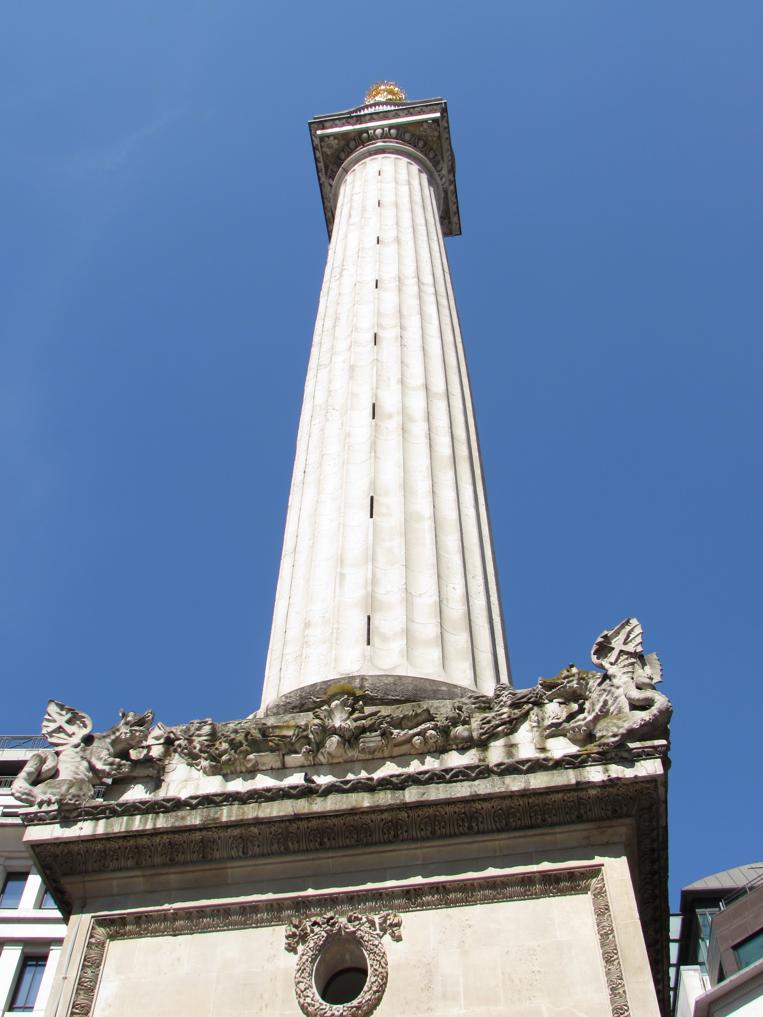 On the corner of Monument Street and Fish Street Hill stands a monument to the Great Fire commissioned by Charles II. Identified simply as “The Monument,” it is described as a fluted Doric column and stands 202 feet from where the Great Fire started. Until very recently, I didn’t know that you could go up the Monument.